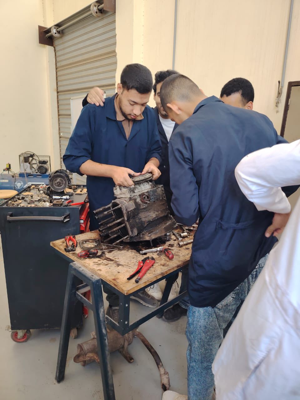 كما يتعرف الطالب على أدوات الفك والربط المناسبة وطرق قياس التآكل والعيوب في مكونات المحرك.