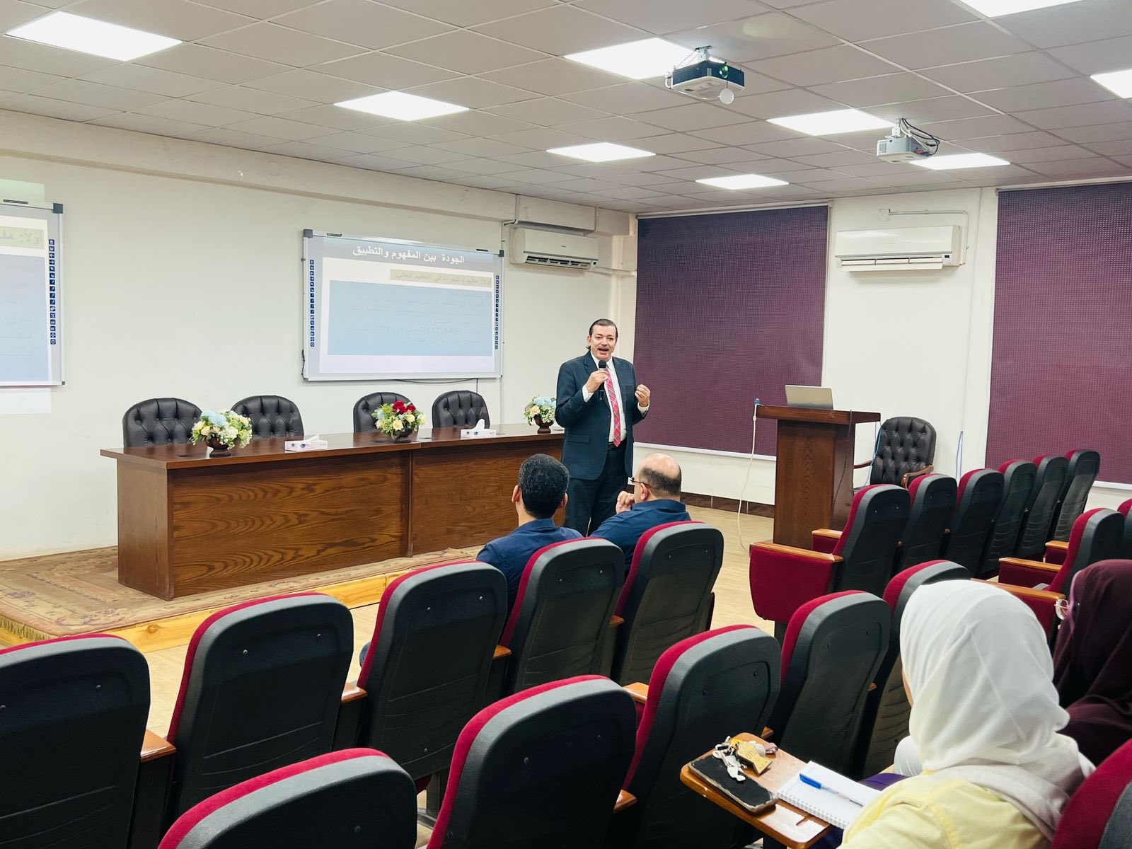 ومن جانبه ،اكد الدكتور عربى كشك رئيس الجامعة ان الجودة أصبحت خيارًا استراتيجيًا لا بديل عنه، في ظل ما يشهده قطاع التعليم العالي من تنافسية وتطور متسارع مشيرًا إلى حرص الجامعة على تعزيز معايير الجودة الشاملة في كافة ممارساتها الأكاديمية والإدارية، بما يسهم في تحقيق رؤيتها نحو التميز المؤسسي والاعتماد الأكاديمي.